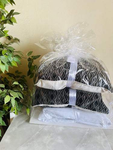 Nobel- Parure de lit en pagne tissé rouge bordeaux et blanc