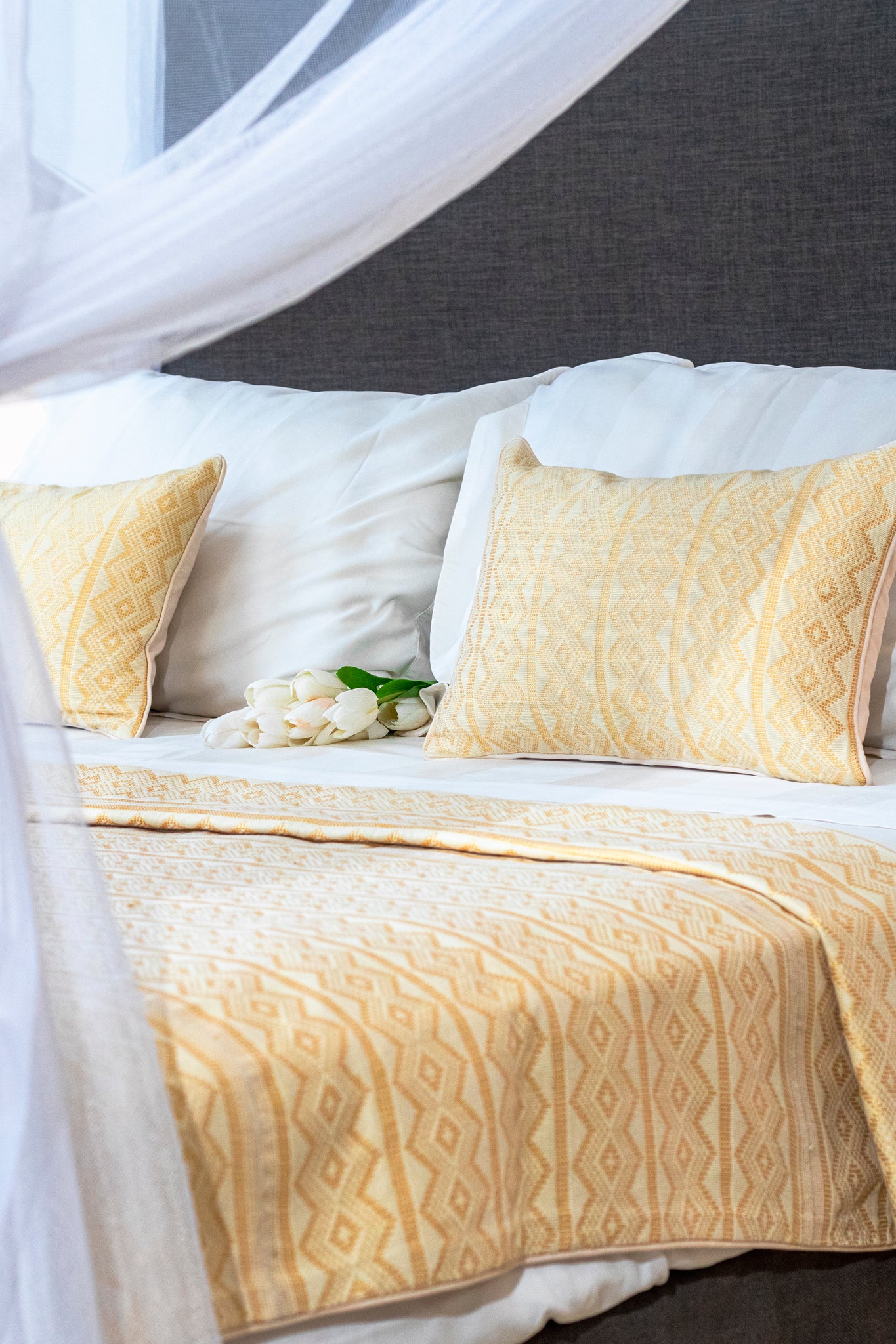 Meissa- Ensemble plaid et 2 housses de coussins en pagne tissé
