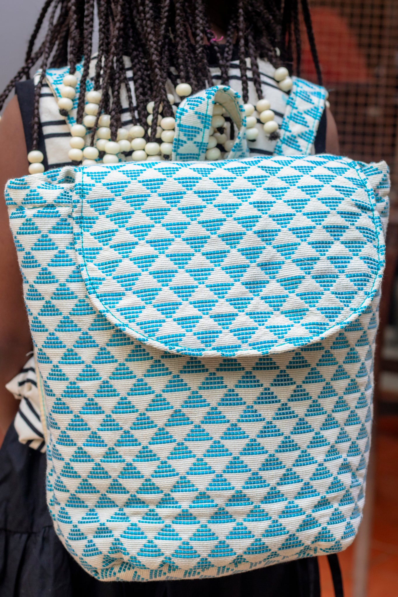 Nos sacs à dos en pagne tissé accompagnent les premières découvertes, les rires et les câlins du matin 🎒